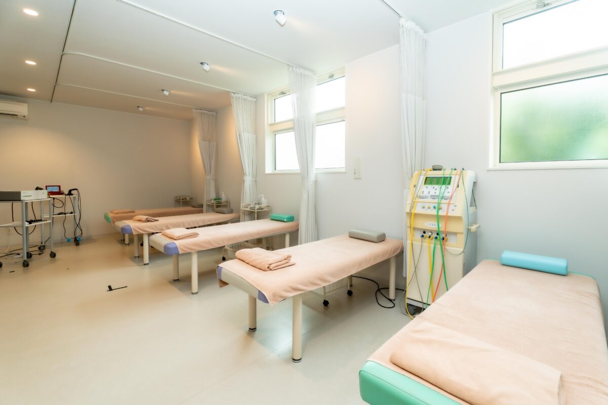 治療の際は治療の部位にもよりますが、めくりやすい服だと楽かもしれません^^無料の着替えの貸し出しもあるので治療の際は着のみ着のままでOK。